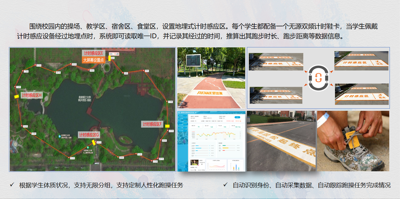 整套智能化的学生体测硬件设备,智能化云端管理平台,实现智能、高效的体质健康测试。学生体测数据智能采集、自动计算成绩、耐力跑测试不限测试人数,数据实时同步管理端,一周完成全校体测任务,一键形成报表汇总给学校管理者或教育部。
