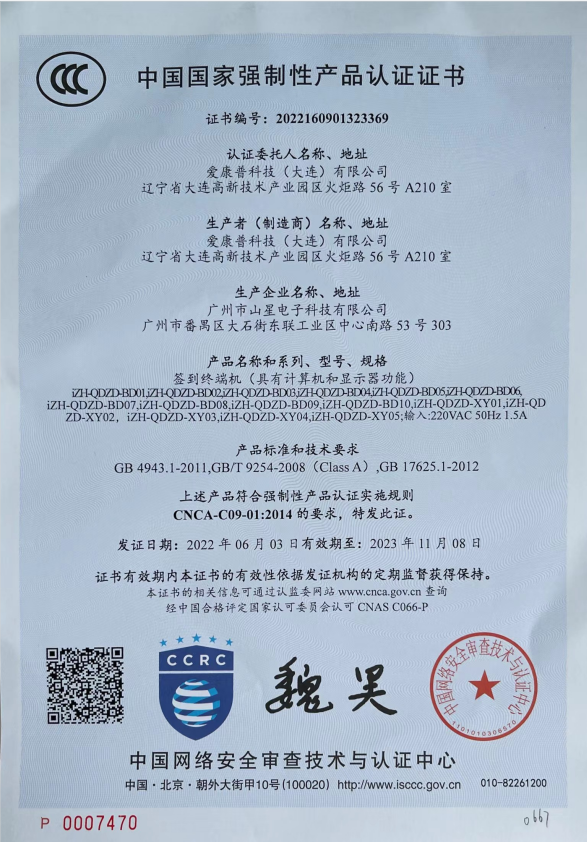 喜讯!热烈庆祝我司智慧体育产品通过3C认证!